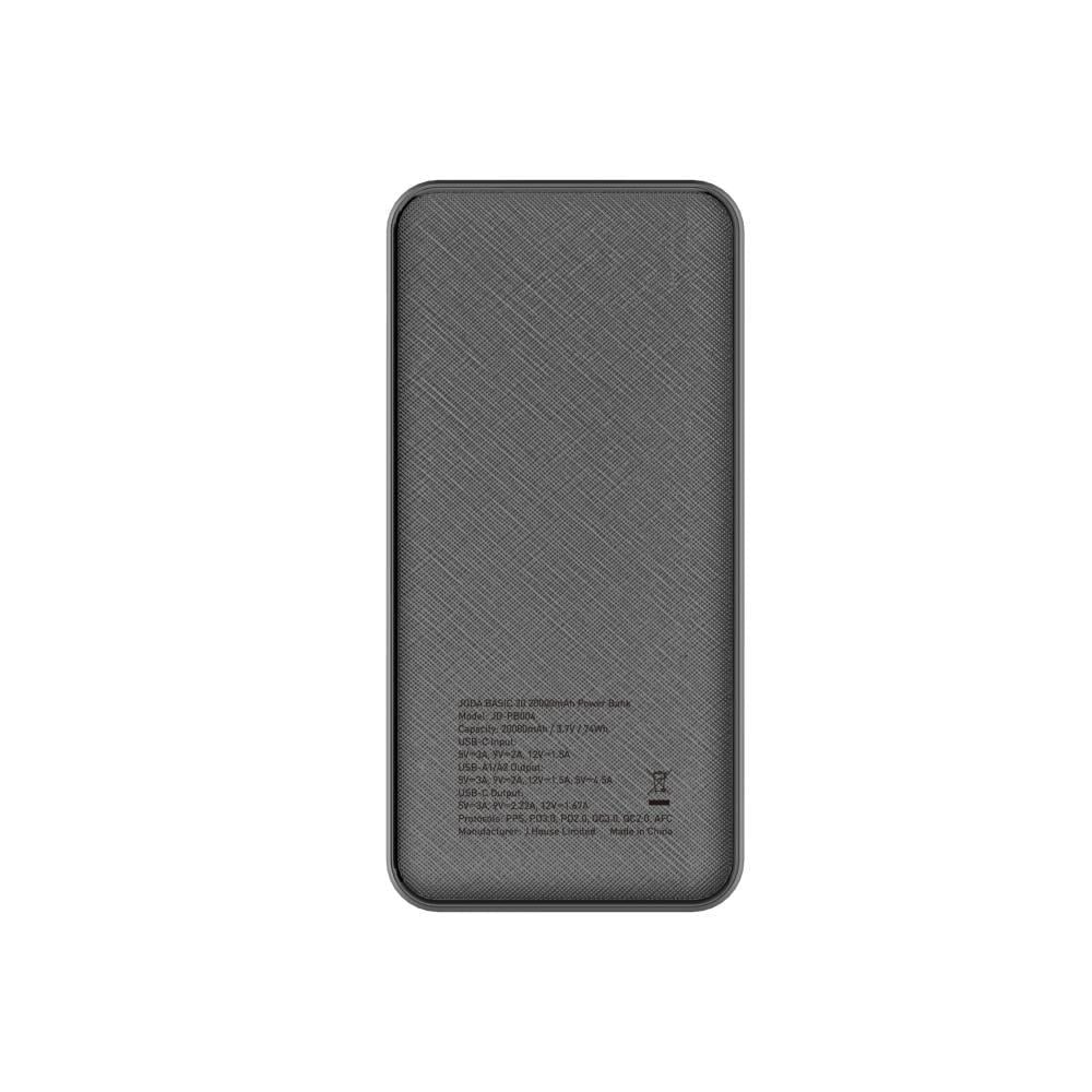 باور بانك JODA BASIC 20 بسعة 20000mAh يوفر شحنًا سريعًا بقوة 22.5W بتقنية PD، مما يجعله خيارًا مثاليًا لشحن الأجهزة الذكية بكفاءة وأمان.