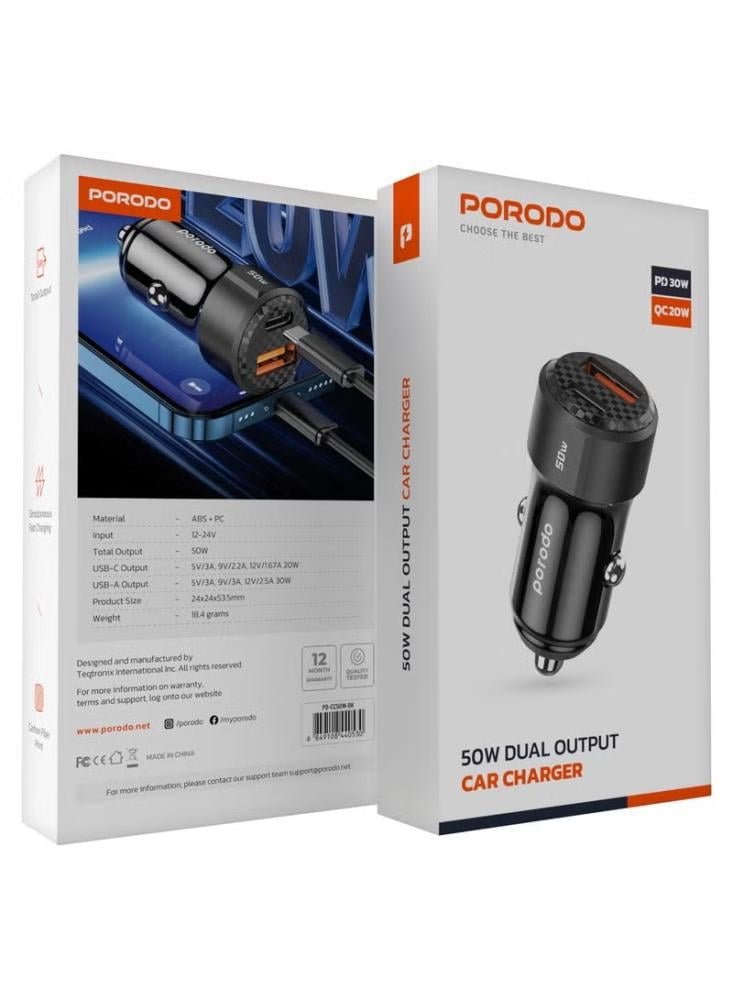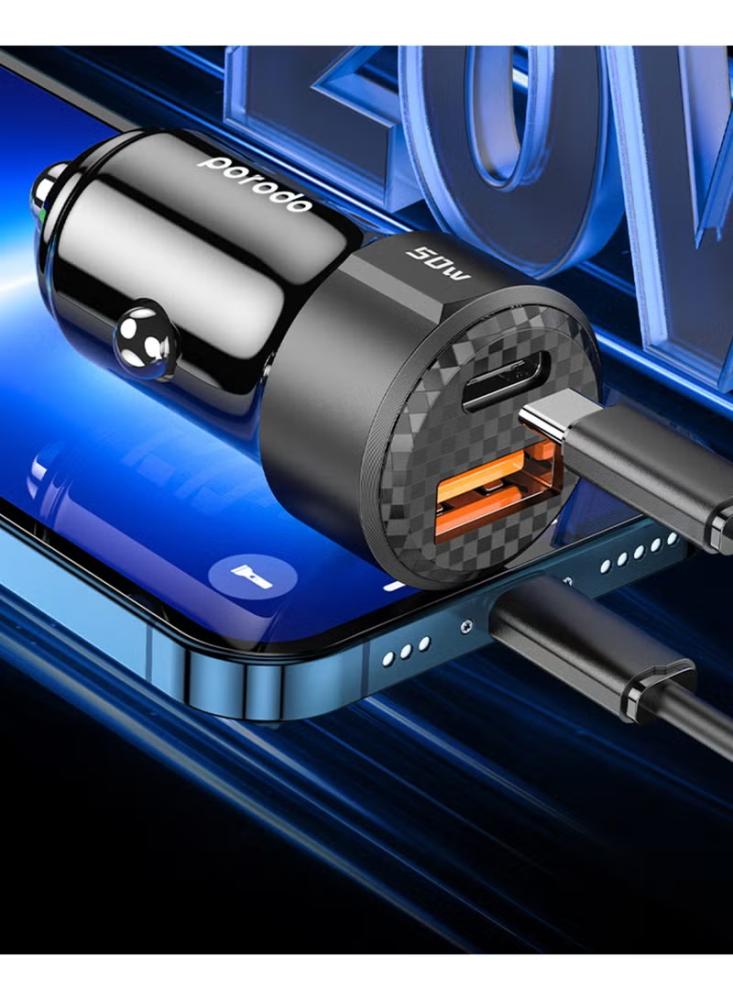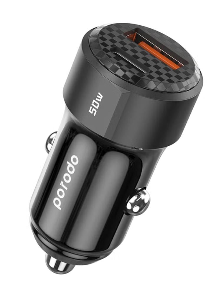 اكتشف قوة شاحن السيارة ثنائي الإخراج Porodo بقدرة 50 واط، المصمم للاستخدام الفعال أثناء التنقل. يوفر هذا الشاحن طاقة إجمالية تبلغ 50 وات، مقسمة بين USB-A 30W QC 3.0 وUSB-C 20W PD، للشحن السريع المتزامن. بفضل طباعته الأنيقة من ألياف الكربون على تصميم ABS + PC القوي، فإنه يوفر الأناقة. يمكن الوصول إليه بألوان زاهية من اللون الأزرق والأرجواني، فهو يجمع بين الموضة والأداء بشكل لا تشوبه شائبة. يمكنك القيادة بثقة مع العلم أن أدواتك الذكية ستتمتع بالطاقة دائمًا.