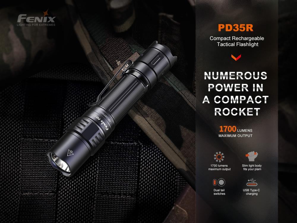 كشاف فينكس E28R V2.0 قوي تصل درجة إضاءته إلى 1700 لومن، ويتميز بحجمه الصغير ووزنه الخفيف مناسب لحالات الطوارئ، ومصمم خصيصا بمواد متينة مقاومة للماء.